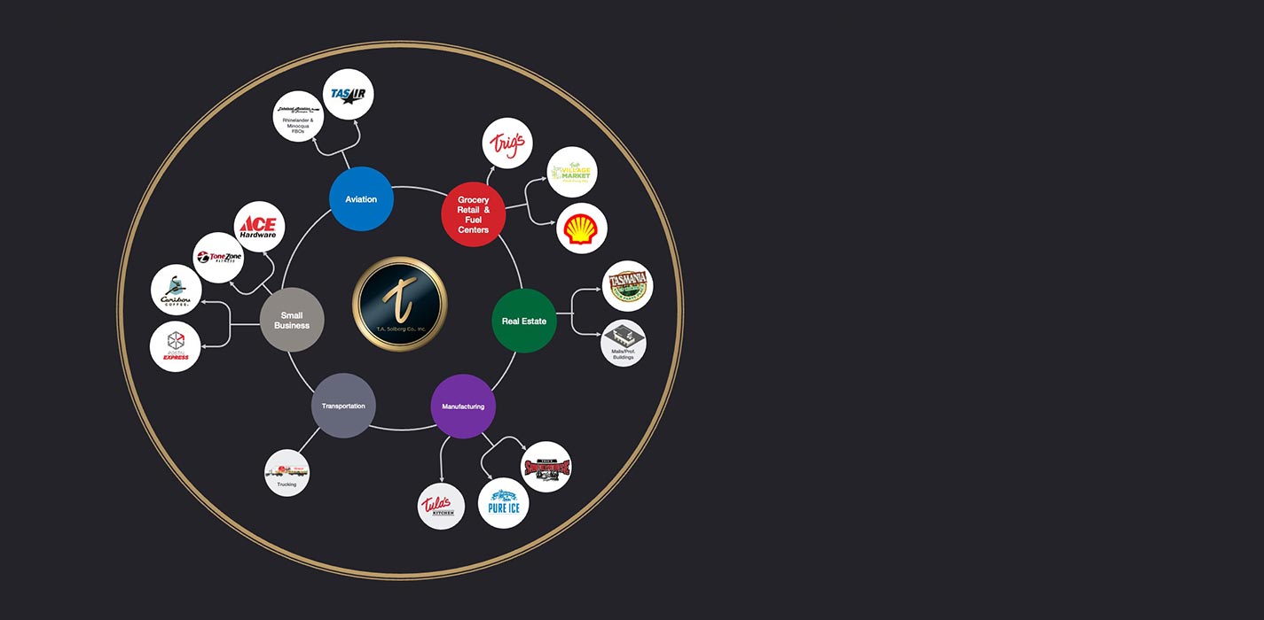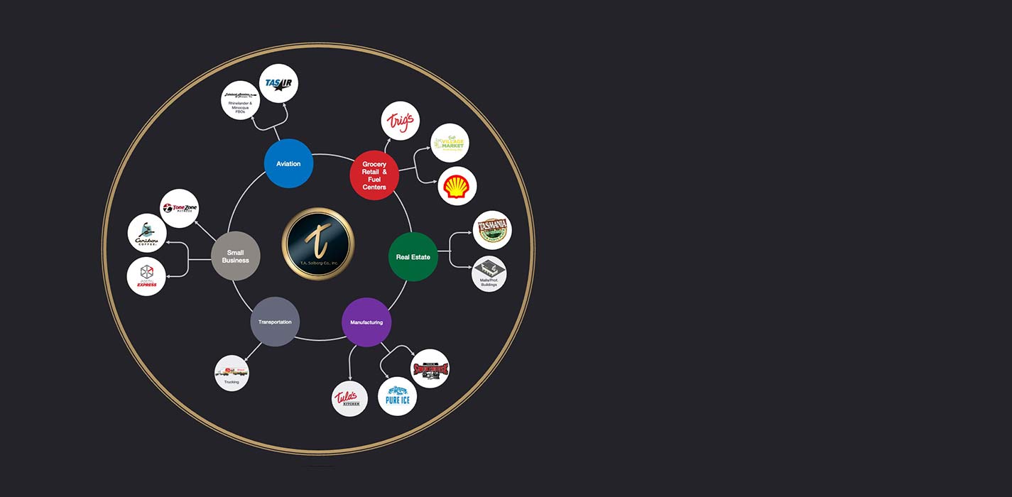 The businesses operate in the areas of Grocery, Retail & Fuel Centers, Real Estate, Manufacturing, Transportation/Warehouse, Small business, and Aviation.
